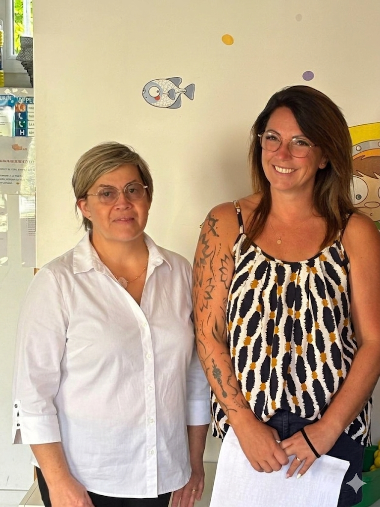 Depuis septembre 2021, la gestion a été reprise par Sylvie MARQUES (à gauche), professionnelle de la petite enfance depuis 29 ans : la prise en charge globale des enfants est au cœur de son projet, entourée d’une équipe bienveillante et impliquée. Sylvie est directrice des Ptits Math’los 1 et 2 et elle est accompagnée par Julie GONCALVES (à droite), directrice des Ptits Mth’los 3.